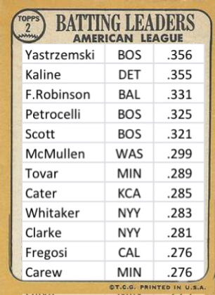 1967AL REPLAY (end of July) John Tomas Uncategorized February 20, 2021 1 Minute BATTING AVERAGE LEADERS Share this: Share on X (Opens in new window) X Share on Facebook (Opens in new window) Facebook Like Loading... Published by John Tomas View all posts by John Tomas Published February 20, 2021